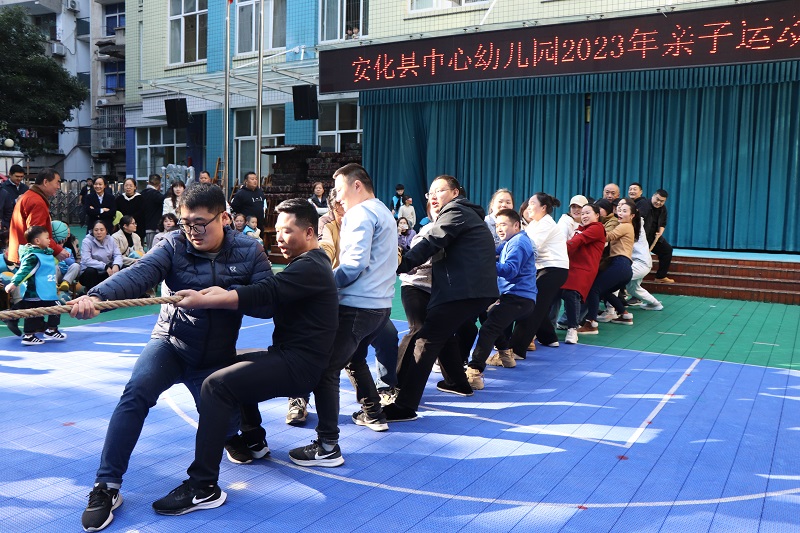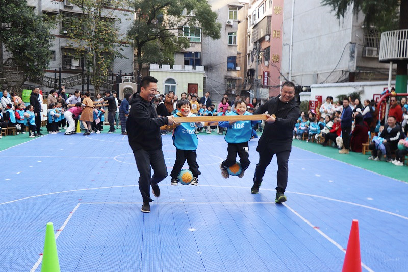 本网讯 运动的号角,吹响了初冬的暖阳。11月16日至17日,安化县中心幼儿园举行了2023年冬季亲子运动会,四百多个家庭相聚在县中心幼儿园操场,大手牵小手,在一个个有趣的游戏项目中感受趣味运动的快乐,享受幸福美好的亲子时光。 此次亲子运动会主题为“我和篮球做游戏”,本着人人参与、快乐共享的指导思想,各年级组精心设计的篮球游戏融合了健体、益智、趣味、协作等诸多元素。活动以中大班篮球韵律操展示、年级组游戏和团体比赛的形式展开,有拔河、快乐拍球、彩虹滑道、轮胎接力送娃等游戏项目,场上的选手们争分夺秒认真比赛,场下的啦啦队热情鼓舞欢呼呐喊,趣味十足的亲子游戏,幽默诙谐的动作让人忍俊不禁,比赛环节一个接着一个,加油声、呐喊声、欢呼声沸腾了整个运动场。 该园党支部书记、园长夏倩霞在活动结束后谈到:“本次亲子运动会将趣味性融入游戏活动中,不仅注重孩子和家长的配合,而且注重个人和集体的协作。亲子运动会不仅培养了幼儿的竞争意识、合作意识,更让他们体会到了集体的荣誉感、归属感及运动的魅力、游戏的快乐。”