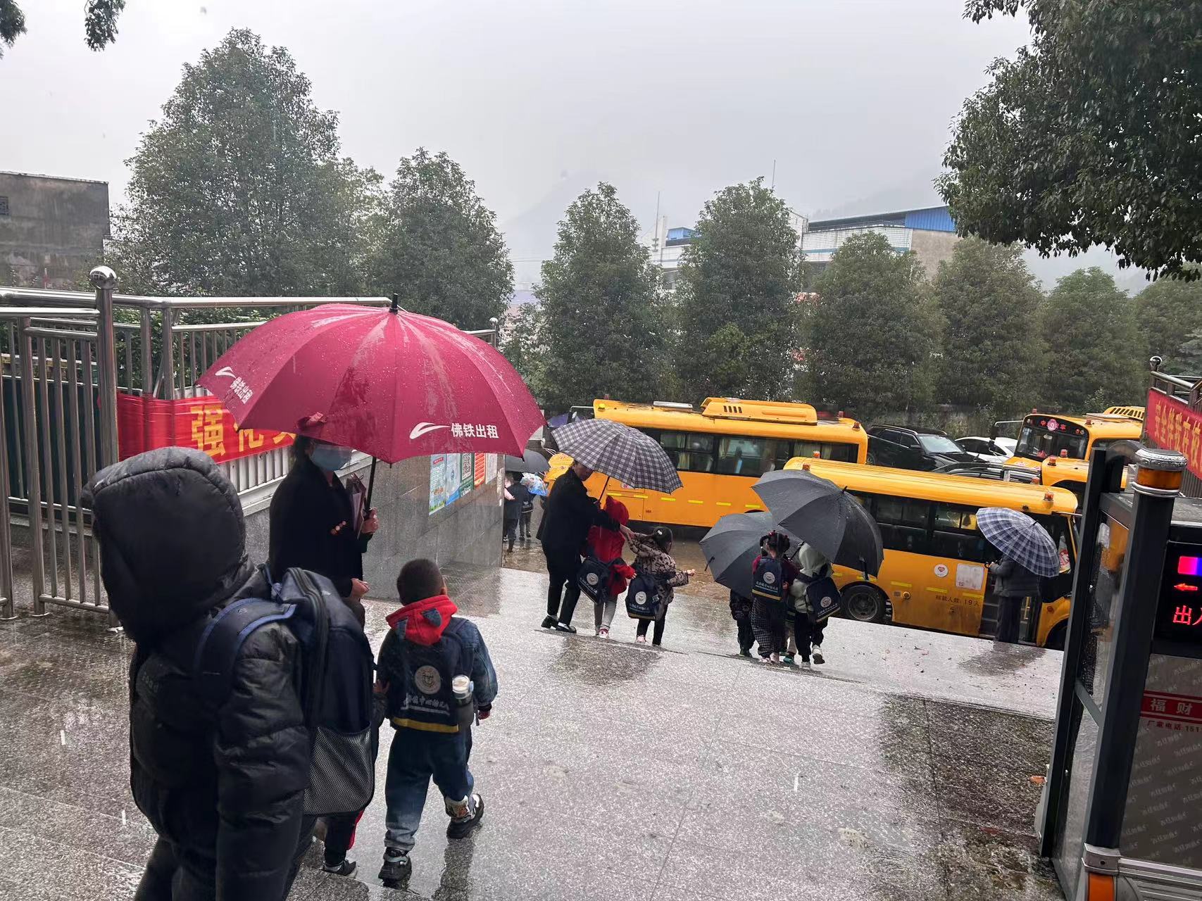 一把把“移动的雨伞”之下,不仅仅是护送着孩子,更是护送着老师对孩子们的关爱,而这份关爱,也会像雨滴一样,一直沐浴着育新的每一个学生。