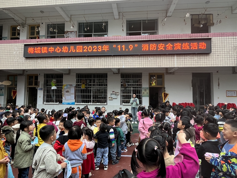 本网讯 “着火啦!教学楼着火啦!老师们、孩子们赶快撤离”11月9日下午两点,正值午睡时间,梅城镇中心幼儿园广播里传出紧急通知,随后伴随着一阵阵急促的警报声,一场消防安全演练拉开了帷幕。 被惊醒的中大班孩子在老师的组织下迅速起床、穿鞋、拿湿毛巾、捂住口鼻、弯腰、排队……一系列撤离的动作都在快速、有序的进行着。小班的孩子有的被吓到了,老师迅速安抚孩子的情绪:“不要害怕,我们要赶快逃离到安全的地方去,老师会保护你的!”只一会儿工夫,各班级都陆续按照指定的方向、路线安全抵达指定地点。到达安全位置后,各班级教师迅速清点人数,并向安全专干廖亚汇报人数。整个疏散演练的过程紧张迅速、有条不紊,没有疏漏一个孩子,也没有出现拥挤踩踏事故,用时5分38秒,达到了预期的效果。 随后,该园保安吴爷爷向全体师幼演示了灭火器的正确使用方法,并现场进行指导。廖亚围绕“一般的小火”“电器、油锅起火”“煤气泄漏引发的火灾”等问题,给孩子们科普了很多消防安全小常识,孩子们个个听得聚精会神。 据悉,该园为确保此次演练活动落到实处,制定了详细的演练预案,对演练的流程、路线和人员安排等内容进行了精心策划和严密组织,做到分工明确,责任到人。各班级教师提前给孩子们开展了关于消防安全主题的教育活动,以PPT、图片、视频等容易理解的方式对孩子进行相关的安全教育,帮助孩子掌握基本的自我防护和逃生技能。