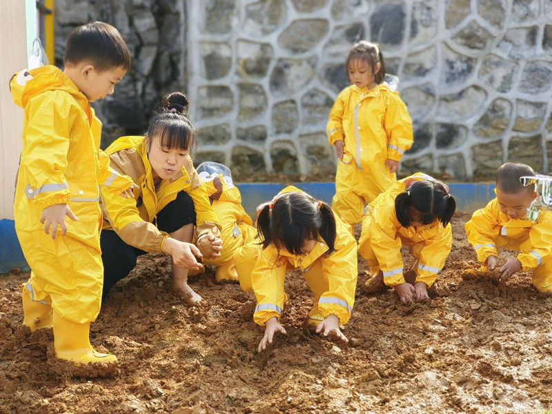 本网讯 11月3日,田庄乡中心幼儿园启动户外自主游戏活动。 户外场地格外热闹,映入眼帘的是一幅幅别开生面的场景,孩子用各种形状的木块、长板搭建城堡;有的登上安吉桶,并伸开双手,自由地在安吉桶上行走;有的钻进小山洞,玩起了地道战的游戏瞧!玩泥巴的谌文韬呼喊着老师:“快过来看看,我用泥巴做了一个大大的生日蛋糕,上面还有五颗大‘珍珠’。”李芳菲小朋友说:“我的泥巴雪人真神气,我还给它戴了一顶绿色的蔬菜叶帽子。”野战区、玩水区、玩沙区等都在上演精彩的游戏瞬间。 园长王佩表示,通过游戏活动观察,发现孩子其实就是天生的“玩家”。下一步,幼儿园将继续在自主、自由的真游戏中,让幼儿获得更多的经验,形成自己的想法、表达自己的见解,不断的去挑战自身最大的潜能。