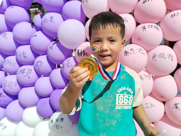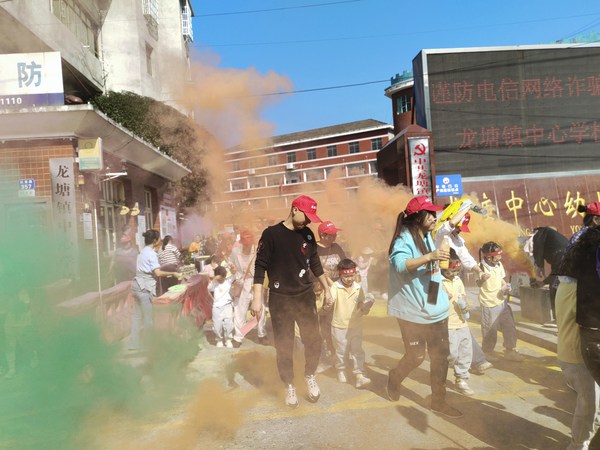 本网讯 11月1日,龙塘镇中心幼儿园开展“大手牵小手,我们一起走”亲子彩虹跑活动。 伴随着响亮的国歌声,亲子彩虹跑正式拉开序幕。一排排整齐的队伍,踏着整齐的步伐,喊着响亮的口号,一张张天真灿烂的笑脸,构成了运动会里最美的画面。该园园长石娜致词表示,幼儿园将坚定给孩子一个快乐童年的梦想,希望大家坚持友谊第一,安全第一,跑出风采,跑出健康,跑出快乐。幼儿代表和家长代表分别发言,对此彩虹跑充满期待。 彩跑在石娜的发令中开始,家长和小朋友们沿着安全跑道一路向前、一路欢笑。赛道中老师设置了一条安全通道,为多彩跑道保驾护航,全程设置六个彩虹点——红站、黄站、绿站、蓝站、橙站、紫站。 热情的老师们在途中站点抛洒彩虹粉以示祝福,不同的站点撒播不同的颜色,让路途变得缤纷多彩,让幸福得以尽情绽放。抵达站点后,各班班主任为小小运动员们颁发奖牌。