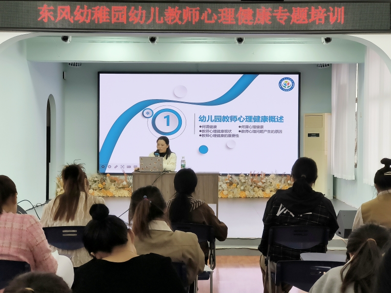 本网讯 10月26日,东风幼稚园召开教师心理健康专题培训会议。 培训邀请了人民医院儿童保健科姚隽妙医生对老师们进行讲座,姚医生以《幼儿教师心理健康与儿童心理行为发育指导》为题,深入阐述了教师心理健康及如何做好幼儿心理健康教育工作等,并细致分析了幼儿的多种心理表现以及对教师的心理健康教育、心理品质教育及幼儿心理能力培养进行细致分析、讲解、指导。 该园教师张志慧表示,“通过此次培训,学会了调节职业压力的方法,改变了自己的认知,在今后的工作中将会注重自己的心理健康,以积极、健康、向上的心态投入到教学中,更好地为幼儿服务。”