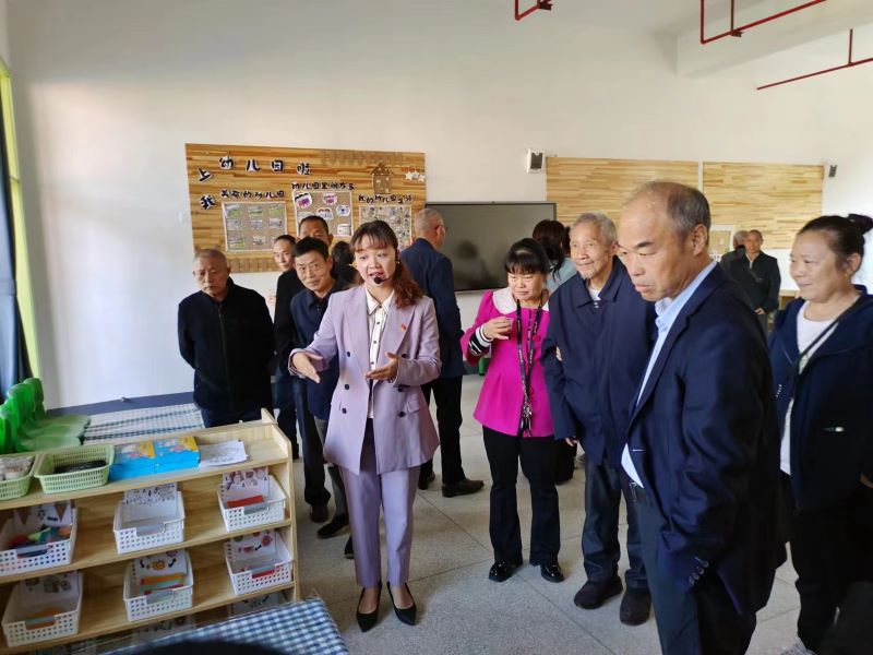 本网讯 10月21日上午,在田庄乡中心校领导的组织下,田庄乡中心幼儿园迎来了60位退休老教师参观游园活动。 活动一开始,在奥尔夫音乐的旋律中,园长王佩带领老教师们一起跳一跳,感受音乐带来的童真。老教师脸上都洋溢着幸福的笑容,像个孩子似的,给幼儿园带来了一派生机勃勃的景象。王佩介绍了园所特色,并带领他们参观了班级教师的主题墙、多元整合里五大领域的区域角以及幼儿作品展示的观摩墙等,进一步了解了幼儿的活动课程。 退休教师一同参观了幼儿园户外游戏场地,对沙池、水池、泥池、野战区、民间游戏区、大型游戏场地的建设和布局,给予一致好评!