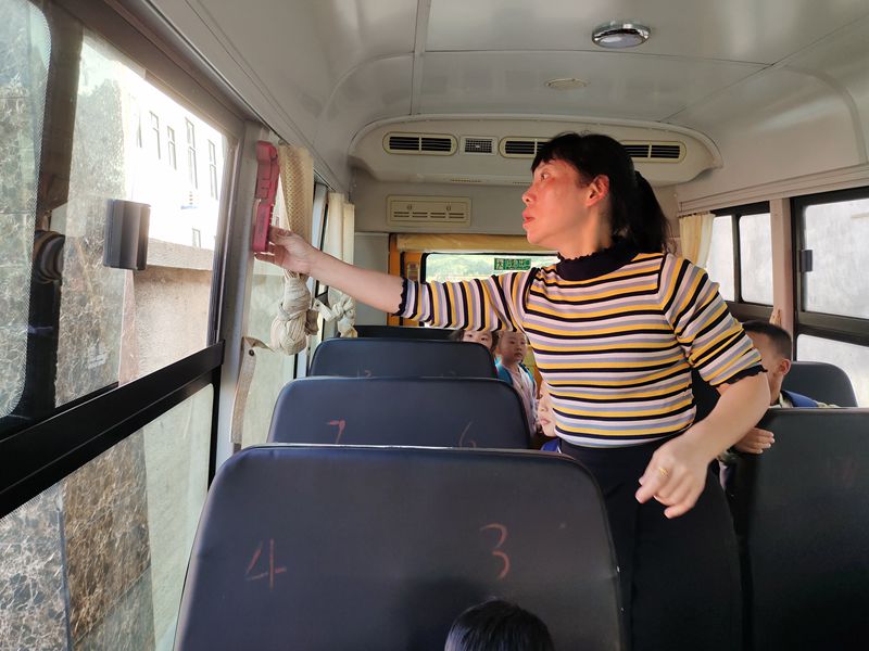 离园时间到了,行政人员来到每辆校车上,对驾驶人资质、校车运行情况、校车车况等进行认真检查,同时还对校车是否按规定配备安全带、逃生锤、干粉灭火器、急救箱等安全设备逐一进行核实,并对每辆校车上的不足做好了记录,要求校车驾驶员与照管员对于不足的地方进行整改。