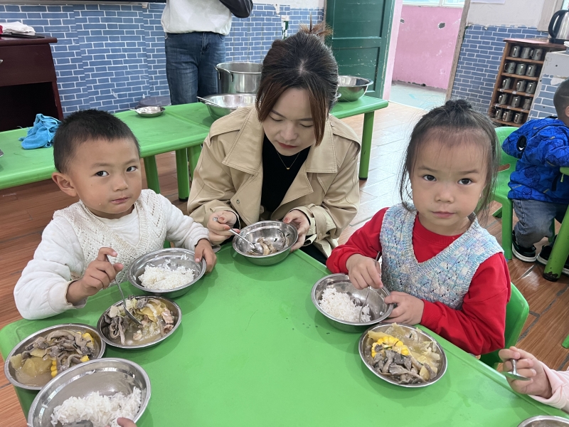 本网讯 “妈妈,你吃一口看看,尝尝我的饭菜是不是比你做得要好吃呀!” 10月9日,柘溪镇中心幼儿园召开了膳食委员会暨家长陪餐活动,家长代表、教师代表共10人参加了此次活动。 会上,总务主任陆晓日向家长们详细介绍了学校食品安全、膳食搭配、设施设备、菜品采购等。园长谢海琴带领家长全面了解幼儿园管理、教育教学日常开展、孩子们的一日生活实况等等,让家长真正地走进幼儿园,成为幼儿园的“管理员”。 会后,幼儿安排家长们与孩子一同就餐,家长们陪餐后纷纷对幼儿园的饭菜赞不绝口。家长们说:“孩子们非常喜欢在幼儿园吃饭,今天参观了幼儿园食堂,看到了孩子既吃得安全又有营养,并养成了良好的进餐习惯,作为家长我们非常放心”。