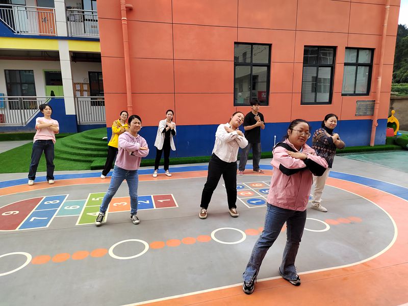 本网讯 10月10日中午,田庄乡中心幼儿园组织全体幼师进行了新课间操培训。 本次课间操培训由四位主班担任,分别从热身、律动、器械、放松四方面进行选材和编排。培训中,各班主班带领教师对自己所选课间操的各动作要领进行了耐心细致地讲解和示范,并对练习过程中出现的不规范动作及时纠正,力求达到标准化、规范化。老师们专注认真,精神饱满,伸展、弯腰、踢腿、跳跃,每个动作都一丝不苟地练习,努力做到标准到位、整齐有力,并富有感染力。 新课间操培训活动,很好地展示了教师健康活泼、积极向上的精神风貌,有效地促进了教师专业化成长!