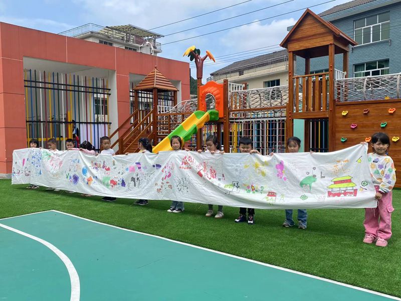 本网讯 9月27日,田庄乡中心幼儿园举行了“十米画卷迎国庆,最美童心绘祖国”十米长卷绘画主题活动。 来到操场,映入眼帘的是一条洁白的画布笔直地平铺在桌面上。绘画现场,长长的画卷一字排开,孩子们在老师的引导下有的蹲着、有的趴着,虽然姿态各异,但是神情专注而认真。你瞧!他们有的用画笔尽情挥洒,像是在描绘对祖国的向往和热爱;有的用彩笔涂鸦,涂出了祖国的绿水青山;还有的用勾线笔在勾画,像是勾勒着祖国的大好河山、雄伟壮观………他们犹如一个个小画家,争相在十米画卷上一展风采。 十米长卷绘画主题活动的开展,让小朋友们感受到祖国的繁荣昌盛,同时也感受到作为一名中国人的自豪。希望孩子们通过此次活动用色彩点燃爱国情怀,用自己的热情迎接国庆节的到来。