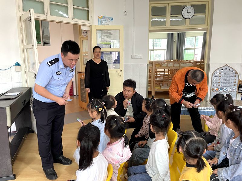 本网讯 9月26日下午,江南镇派出所教导员彭升龙等一行几人来到江南镇中心幼儿园,为孩子们带来了一场受益匪浅的法制安全知识教育讲座。 讲座上,彭升龙采用通俗易懂的语言、生动有趣的互动方式与孩子们展开交流。向小朋友讲述了“一停、二看、三通过”“一盔一带”等交通规则,并且让小朋友们懂得不但自己要注意安全,还要做小小监督员,提醒爸爸妈妈、爷爷奶奶们遵守交通规则。讲座过后,彭升龙还送给每个小朋友一张安全知识卡片。 法制安全教育是幼儿园工作重中之重,今天的讲座对幼儿来说是一次特别而又重要的活动,提高幼儿自我保护能力任重而道远,而这也需要幼儿园家庭共同努力将安全教育融入日常生活中,有效形成家园安全法治教育合力,构筑生命的安全堡垒。 今后,该园将继续把安全教育渗透到日常教学中,为幼儿的安全健康快乐成长保驾护航。