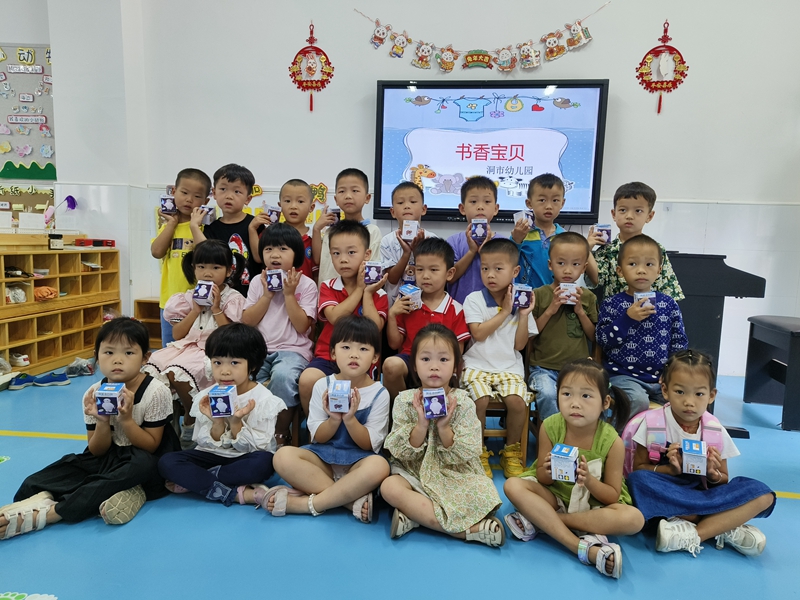本网讯 近日,洞市幼儿园保教主任邱淑琴组织开展了暑假阅读月活动的总结及颁奖仪式。 “宝贝们,你们喜欢阅读吗?”“宝贝们,你们暑假里面都是和谁一起看书呢?”在孩子们的肯定的回答声中迎来了激动人心的颁奖仪式:园长罗章玲、邱书琴分别为荣获阅读打卡“书香家庭”、各班“阅读打卡书香宝贝”颁发奖品奖状。获得书香宝贝奖的孩子们站在领奖台上,看一看奖状上自己的名字,摸一摸手中的奖品,听着老师鼓励的话语,看着台下老师和同学们欣赏的目光,开心极了。获得“书香家庭”的孩子和家长尤其高兴:孩子们捧着心仪的奖品,脸上挂满幸福的笑容,看着自己的家长捧着荣誉证书,脸上自豪之情溢于言表。 颁奖仪式的举行能很好激励孩子将阅读习惯继续坚持,让其更好地成长,更好地养成阅读习惯。颁奖结束后,罗章玲跟家长感叹道:暑假的阅读活动中,不仅看到了家长们的示范、陪伴和鼓励,也看到了孩子们的认真、坚持和成长。