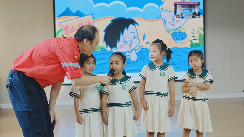 本网迅 9月18日上午,东坪镇萸江幼儿园联合安化县雄安救援队-防灾减灾安全教师讲师团开展了一场防溺水安全主题活动。 活动中老师和孩子们一起观看了溺水情景表演、自救示范、游戏互动等多种有趣的讲解方式。深刻了解到溺水后如何自救的正确方法。并通过提问“看到有小朋友落水了应该怎么办呀?可不可以一个人去河边游泳呢?”等问题,引导孩子们积极思考回答,使他们巩固了防溺水“七不”的内容,知道了什么情况下是可以游泳,什么情况下是不能游泳的;教会了孩子们万一自己溺水时如何自救,或遇到有人溺水时又该如何正确救人等等。 活动结束后,孩子们还意犹未尽地讨论着今天学习到的防溺水新本领,纷纷表示回家要当小老师,教爸爸妈妈一起学习防溺水安全知识。
