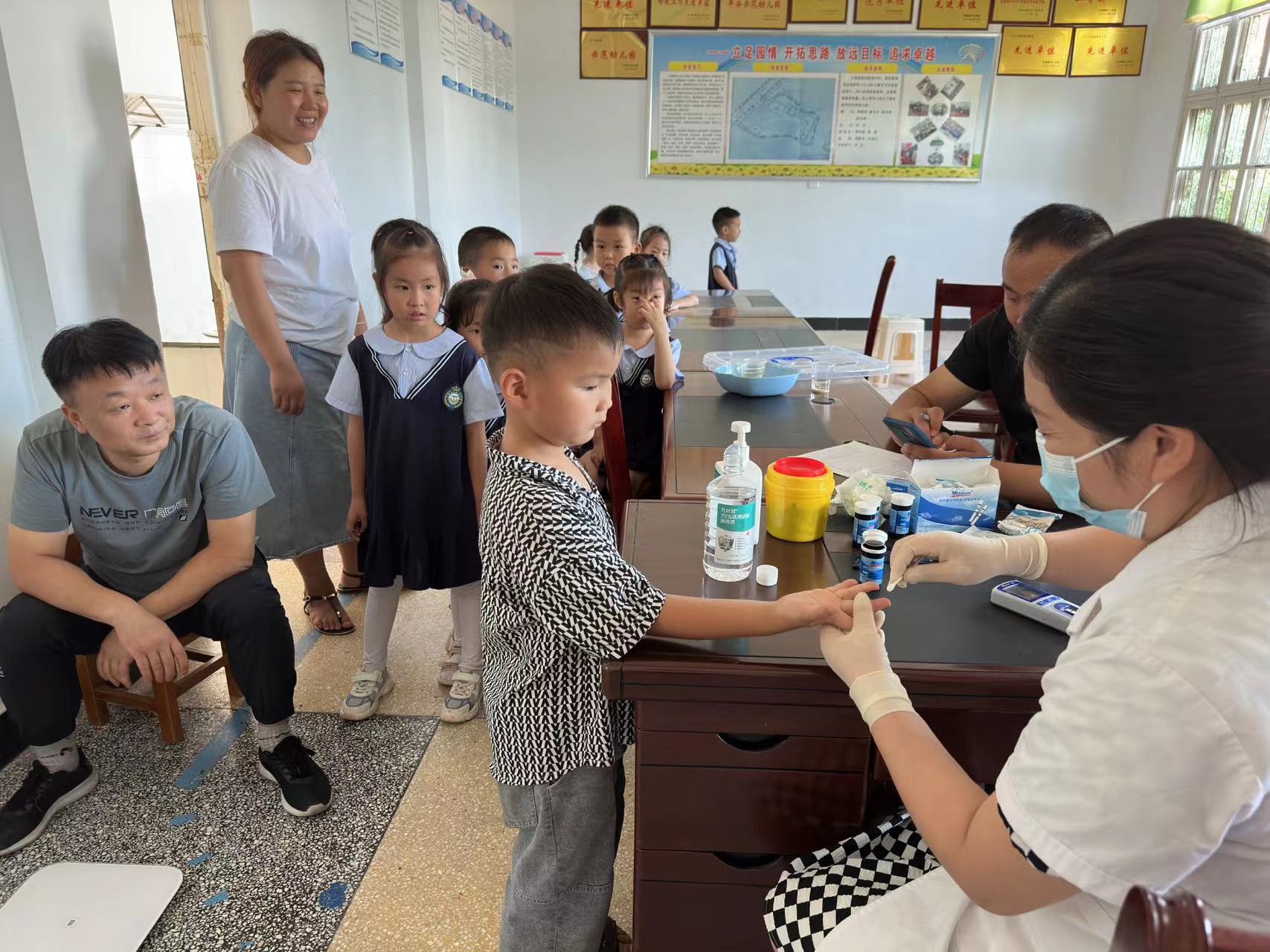 本网讯 9月18日,长塘镇卫生院的白衣天使们来长塘镇中心幼儿园为该园大班、中班的孩子进行健康体检,此次体检主要是对孩子的身高、体重、视力、龋齿、血红蛋白等方面进行常规健康检查。