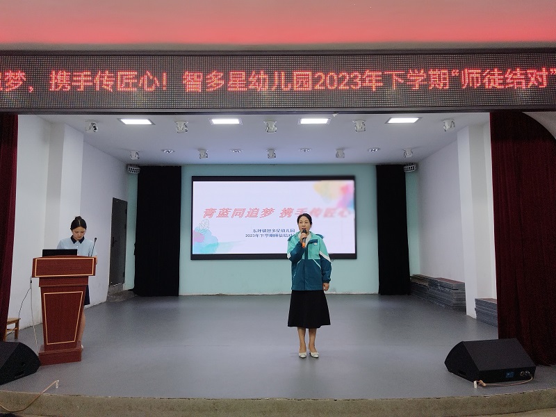 本网讯 为充分发挥骨干教师和经验教师“传”、“帮”、“带”的作用,加快新教师队伍建设,提高新教师的教学教育水平,更好地促进教师专业成长。9月6日,东坪镇智多星幼儿园举行了“青蓝同追梦,携手传匠心”师徒结对活动。
