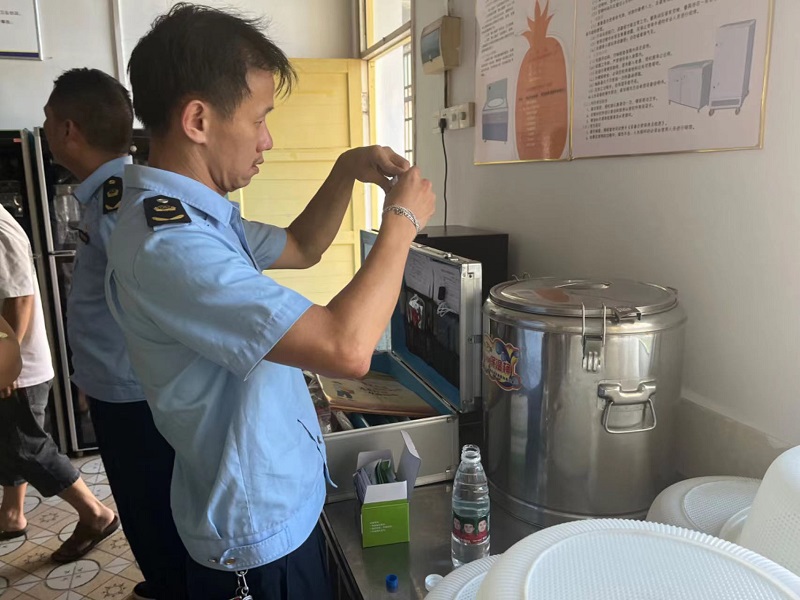 本网讯 9月5日上午,烟溪镇市场监督管理所、综合行政执法大队、食品安全办到烟溪镇中心幼儿园开展食品安全检查、传染病防控督查联合行动。 检查组一行仔细调查了食堂各种设备的使用情况,现场对食材进行快速检测。认真查看了食堂从业人员健康证、食品采购储存证、索证索票、营业执照、进出库台账、食品留样、传染病防控等工作资料,对该园各项工作的开展给予了充分肯定,并对今后如何进一步抓好食品安全卫生提出了新的要求。 市场监督管理所所长夏卫表示:类似的检查会持续进行,希望该园能够一如既往,绷紧安全工作的弦。同时,动员大家不食用野生蘑菇等,增强食品安全意识,确保在园幼儿平安、健康。