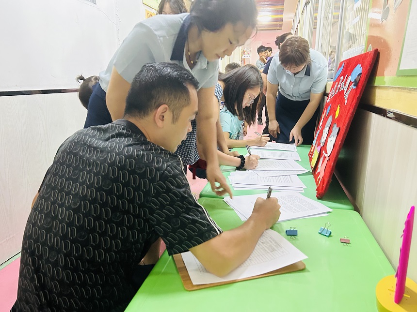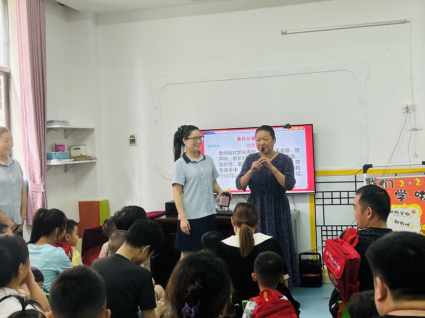 本网讯 9月2日,东坪镇泥埠桥幼儿园开展新生亲子见面会。 早上九点,孩子们在爸爸妈妈的陪伴下进入幼儿园,孩子们入园后接受了有序的晨检,老师们亲切友好的问候拉近了彼此间的关系。在轻松有趣的游戏中,老师和孩子们通过自我介绍,彼此熟悉。“乒乓球”“棒棒糖”“击鼓传花”等游戏活动充分调动了孩子和家长参与“破冰”的热情,感受到同伴互动的快乐。他们在如厕、洗手、喝水、品尝水果等在生活体验中认识了自己的教室和盥洗室,并通过观看园所介视频,家长也直观地了解幼儿园的园本文化理念、游戏教学活动、一日生活环节。 此次新生见面会气氛温馨、内容丰富,让孩子在体验集体生活的愉悦中缓解了对幼儿园的陌生感,萌发了对入园的期待。教育是一个常态化的持续的过程,幼儿园与家庭、老师和孩子的相遇就是一场双向奔赴,“爱”是桥梁,“信任”是纽带,让我们带着美好的期许,等待一季花开的盛宴!