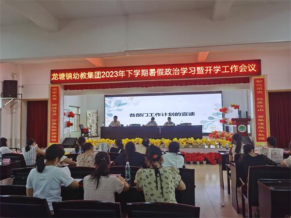 本网讯 8月27日,龙塘镇幼教集团召开了秋季政治学习暨开学工作会议。 会议在有趣的团建活动“桃花朵朵开”中拉开帷幕。会上,龙塘中心幼儿园园长石娜就师德师风作专项培训,要求老师们不断提高师德修养和教书育人的能力水平,造就一支让人民满意的幼儿教师队伍。 紧接着,各部门负责人依次对教育教学工作、保育工作、安全工作、后勤工作做了周密细致的安排,并对落实各项工作提出了明确的要求,为全体教职工接下来要开展的各项工作指明了方向、理清了思路。 会后,各班级教师对班级卫生进行了全面且彻底地消毒,不放过任何一个角落,确保幼儿来园的身心健康。