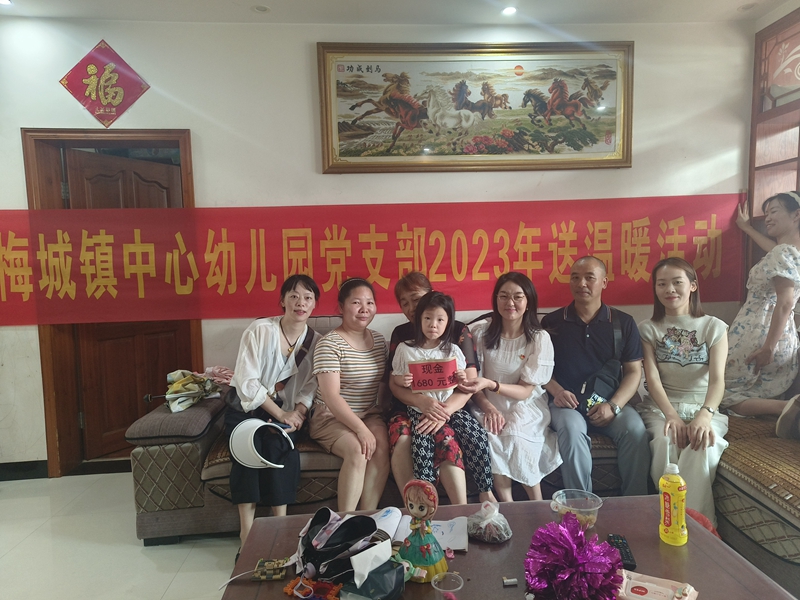 本网讯 6月27日上午,梅城镇中心幼儿园党支部开展“送温暖”活动,党支部书记晏丽妆、支部委员代表、行政代表、幼儿园教师代表、家长委员会代表等10人参加活动。 活动中,爱心团队走访该园九名贫困幼儿,捐赠人员到幼儿家或幼儿家附近,为幼儿家庭进行现金捐赠。晏丽妆与家长进行亲切交流、向家长反馈幼儿在园的学习和生活情况,勉励他们克服暂时的困难,并与孩子深情拥抱,鼓励孩子要好好学习,孝顺父母,早日成为有用之才。 据悉,本次捐赠活动的资金来源于“六一”跳蚤市场活动各班级义卖款项,全园18个班级共筹集捐款资金13860元。贫困家庭通过自己提交申请,由幼儿园党支部成员和家委会共同审核,然后进行7个工作日的公示无异议后,最终确定捐款对象。