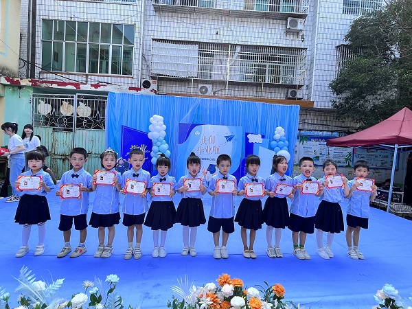 本网讯 6月25日上午,大福镇中心幼儿园举行“爱不打烊,心不散场”大班毕业典礼。 活动开始前,老师们为孩子们的典礼活动布置上温馨的环境,让孩子们在温馨、愉快的环境下度过具有成长意义的一天! 踏着动感的节奏、一群活力满满的宝贝们,在老师的陪同下正朝我们自信地走来,伴随着欢快的歌曲,大一班的宝贝们带来舞蹈《把未来点亮》。本次毕业典礼活动也在这激情的音乐中正式拉开了序幕! 每一年的迎来送往是自然规律,但是每一届的毕业典礼,吴子青园长都是喜悦中夹杂着痛苦、饱含着依依不舍……在典礼上,吴子青园长将自己对孩子们的不舍与祝福化成一句句殷切的叮咛,一字一句间都是不舍,他期盼每一位幼儿,健康快乐、自信勇敢、阳光向上……