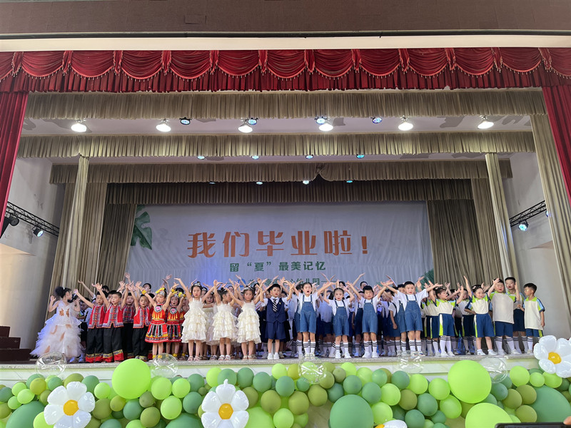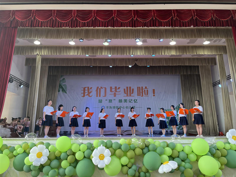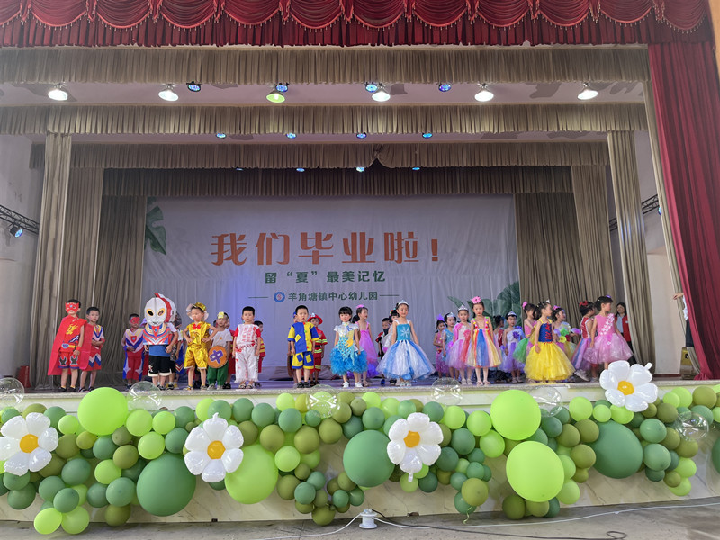 本网讯 6月21日,羊角塘镇中心幼儿园举行2023届大班毕业典礼活动。 活动在教师舞蹈《小城夏天》中拉开帷幕。该园园长贺林向即将成为小学生的小朋友们送上最美好的祝福和最殷切的期望;大三班王瑨翔妈妈作为家长代表感谢幼儿园的辛勤培育、感谢老师们的谆谆教导和精心呵护,深情的话语感动在场的每一位家长、老师和孩子;大四班的幼儿代表王瞬娴更是用稚嫩的语言表达出了对幼儿园的依依惜别之情。 孩子们怀着激动的心情,踏上闪亮的舞台,尽情展现自己最闪亮的一面,竹竿舞《丽江三部曲》、环保时装秀、情景剧《我们毕业了》等精彩的节目赢来大家阵阵掌声。大班组老师齐声朗诵毕业诗,孩子们依依不舍地演唱《毕业歌》,整个会场老师、孩子、家长热泪盈眶。