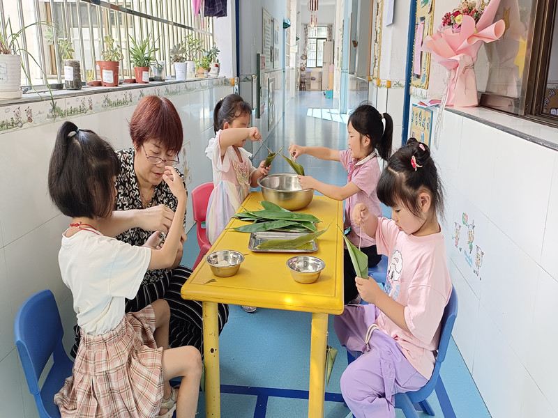 大班组更是开展包粽子活动,在老师们的帮助下完成一个个各具特色的粽子。