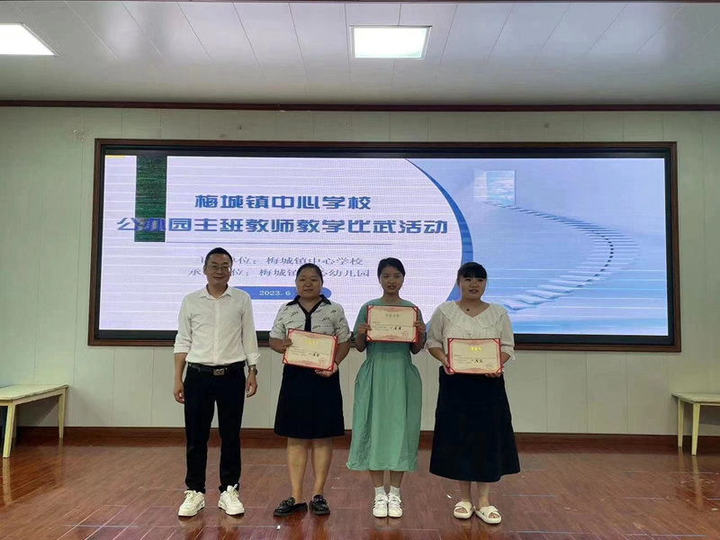 本网讯 6月14日至16日,由梅城镇中心学校组织的镇区公办园主班教师教学比武活动在梅城镇中心幼儿园举行,来自启明星幼儿园、紫云幼儿园、望城幼儿园及中心园的24位主班教师参与比赛,由各园所园长和保教主任担任评委工作。 本次教学比武活动涵盖小、中、大三个年龄阶段的五大领域中的内容,丰富的教具、精美的PPT,多元化的教学方式及孩子们在课堂的精彩互动,让在场的老师们享受一场丰盛的视觉盛宴。 打头阵的是赵立芝老师带来的小班健康活动《小小特工》,独具匠心的森林场景设计,环环相扣的故事情节,再配上轻快的音乐,紧紧抓住了孩子的兴趣点,让孩子们在游戏中,完成跑跳爬钻的活动目标,也得到全场老师们的一致好评。张凤老师执教的中班语言《一群绵羊出门去》,灰太狼与小羊们的情景剧导入,新颖独特,与结尾环节情景游戏首尾呼应,让故事情节与安全教育完美融合,体现以人为本,以游戏为主的教育理念,24个各具特色的教学活动依次完美展现。 通过三天的激烈角逐,评委老师的专业评分,最终傅喜姣等三位老师荣获一等奖,张凤、廖崔华等五位老师荣获二等奖,其余教师均获得了优胜奖。活动最后,梅城镇中心学校校长贺获就本次活动进行了总结,希望老师们常学常新不断进取,在默默奉献与孜孜不倦的追求中,收获那份属于教育人的甜与乐,不负芳华,砥砺前行,在幼教的道路上,遇见更加优秀的自己!