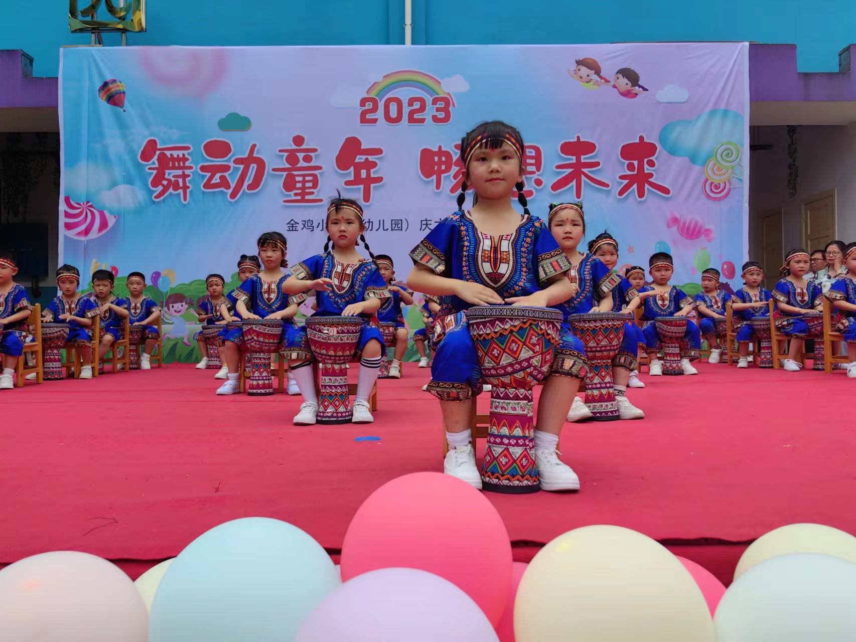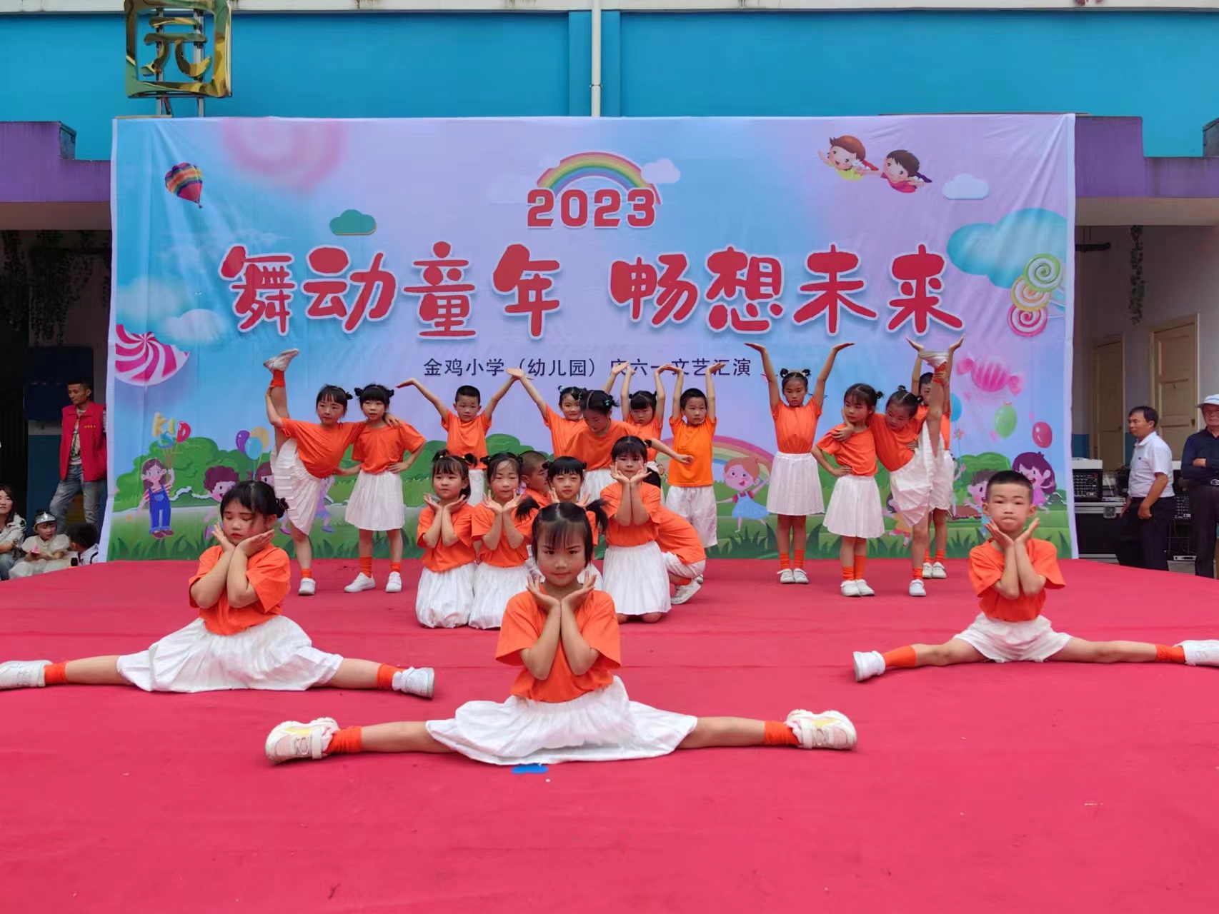 活动前,金鸡幼儿园、金鸡小学的孩子们聚在一起,说着、笑着、乐着,尽情享受着自己的节日。活动中,小演员们身着节日的盛装歌唱着、舞动着……舞蹈、T台秀、诗朗诵等才艺展示好戏连台,精彩纷呈。小观众们个个兴高采烈,合着欢乐的音乐,台上台下互动,欢声一片。