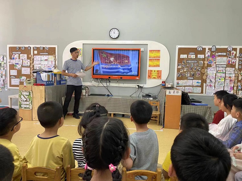 5月18日,一句句铿锵有力的话语从安化县中心幼儿园2003班教室传出来,该班级“故事爸妈进课堂”活动正在进行中。谢思颖爸爸结合自己16年的军旅生涯经历,用影像故事分享、现场互动等形式,为孩子们普及海洋生物知识,介绍了中国海疆和海军五大兵种。