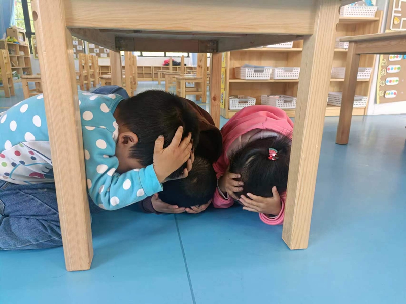 本网讯 “下雨了,我们不能躲在大树下面”“地震来了,我们不要乱跑,抱头赶快躲起来”……5月12日,洞市幼儿园以班级为单位开展“防灾减灾 安全‘童’行”主题活动。 小班通过视频、儿歌、情景演示等方式,让幼儿了解地震的相关知识,熟悉室内就近的安全区域及逃生技巧;中大班的孩子在老师的引导下,用绘画的方式表达对自然灾害的认识,防震减灾的重要性;师幼共同学习地震来临时应如何保护自己以及保护自己的姿势:蹲下身、双手举起、抱住头,孩子们学得可认真了!躲避的位置也有大学问,小朋友们纷纷寻找教室的角落、桌子的下方、床铺底下等藏身处,小朋友设计了幼儿园内地震逃生路线,介绍起来头头是道。