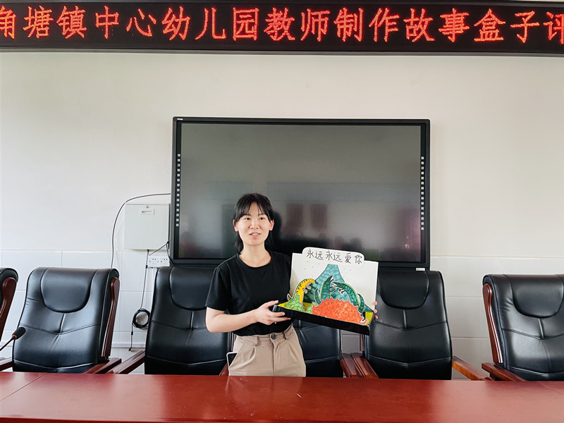 本网讯 5月6日中午,羊角塘镇中心幼儿园开展“绘本故事盒,巧手妙趣多”为主题的故事盒子展评活动。 18个不同构造的盒子,讲述了18个不一样的绘本故事。故事《龟兔赛跑》《小马过河》《猴子捞月》等,运用了泥塑、折纸、绘画、拼贴等不同表现形式。经过老师巧夺天工的创意,一个个生动的“盒子故事”展现在大家面前。本次制作“故事盒子”最大的亮点是:可操作性强,这与教育理念的不断更新有着直接的关系,再就是就地取材,一个盒子一个故事,便于保存和收藏。例如王达娇老师制作的立体书《小红帽》,她利用盒子本身的特点,让立体书真正的“立”了起来,而且幼儿在欣赏的同时还能动手操作,可以更直接的了解故事内容,并且起到了很好的教育作用。 该园业务园长夏馨馨对本次活动中老师们的表现给予了高度的评价。老师们纷纷表示会继续努力、学习和钻研新的教育理念,为孩子们创作出更有趣的“立体图书”,让故事如蒲公英般飘满幼儿园。
