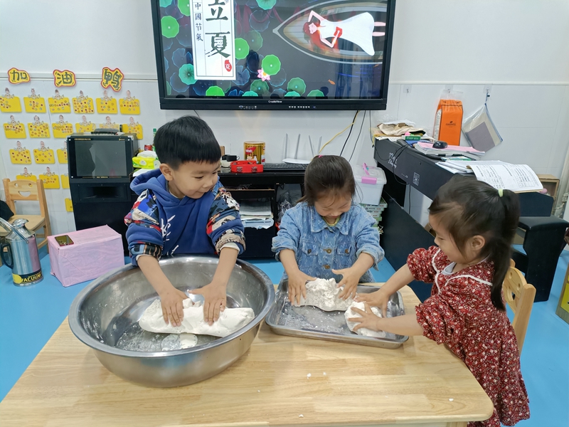 本网讯 5月6日,洞市幼儿园开展“别样立夏”主题系列活动。 各班教师通过图片、视频等形式向孩子们讲解有关立夏的由来及习俗,让孩子们对立夏有了初步的了解。“做立夏坨”“绘画彩蛋”“斗蛋”等立夏习俗活动在各班如火如荼地进行着。 “做立夏坨”活动中,老师带领孩子们观看了制作过程,了解了制作材料:搓面团了,孩子们特别兴奋,一个个捏起一小团,合在手心里搓一搓、揉一揉,一个个坨子就出来了。品坨子时,孩子们的脸上都洋溢着幸福的笑容。“绘画彩蛋”活动中,一枚枚普通的鸡蛋,在孩子们的巧手下进行了华丽的变身:有夸张的表情;有五彩的条纹像盛开的花朵;有妙趣横生的动物。 “斗蛋”是孩子们最感兴趣的活动,大家三个一群,五个一伙,个个摩拳擦掌,开始“斗蛋”。只见小选手们全神贯注地盯着自己手中的蛋,在热闹的“加油”声中多番角逐。