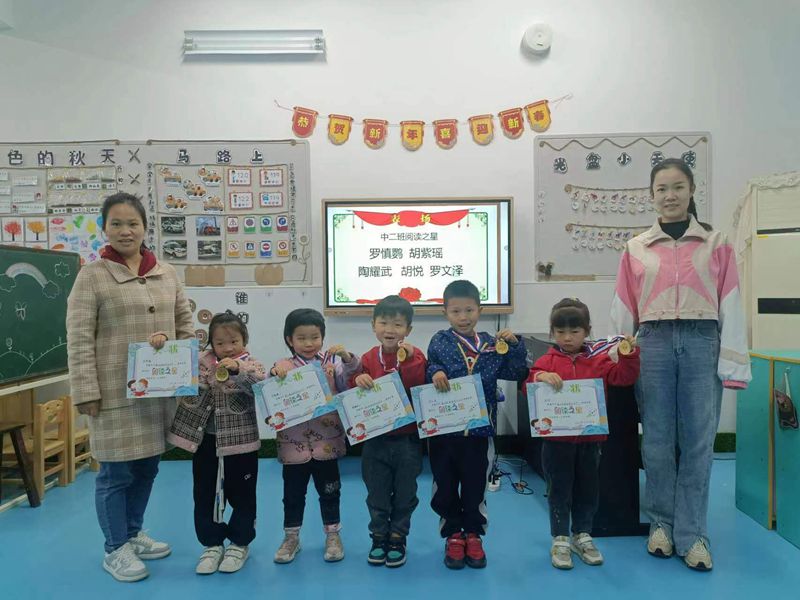 在颁奖典礼上,园长罗章玲为阅读节表现突出的“阅读之星”颁奖,并为孩子们送来了祝福与希望,期盼“阅读之星”可以每日闪耀,希望每一个孩子都从小养成爱阅读、坚持阅读的好习惯,让阅读承载成长的梦想,放飞快乐的童年。