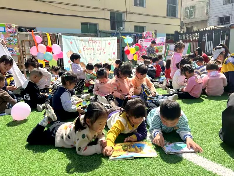 本网讯 4月27日,天气晴朗,江南镇中心幼儿园的小朋友们走进足球场的草地上,分享阳光,分享故事。 “草地漂书香,故事我来讲”“草坪故事会”“最美四月天,最是读书时”,草地上各种海报惹人注目。老师们用彩色的地垫、气球、绿树、布娃娃、小书桌装扮了许多小舞台。 草坪故事会开始了,绿茵茵的草地上,小朋友们安安静静的阅读绘本,认认真真听故事。小选手们把自己融入到故事中,表演了丰富多彩的节目,他们自信满满,神采飞扬的讲述一个个有趣的故事,表情丰富,动作俏皮可爱。大家都沉浸在阅读的海洋中,不辜负阳光正好。温暖的阳光洒在这片充满爱意的草地上,春天定格了孩子最纯真的笑脸!