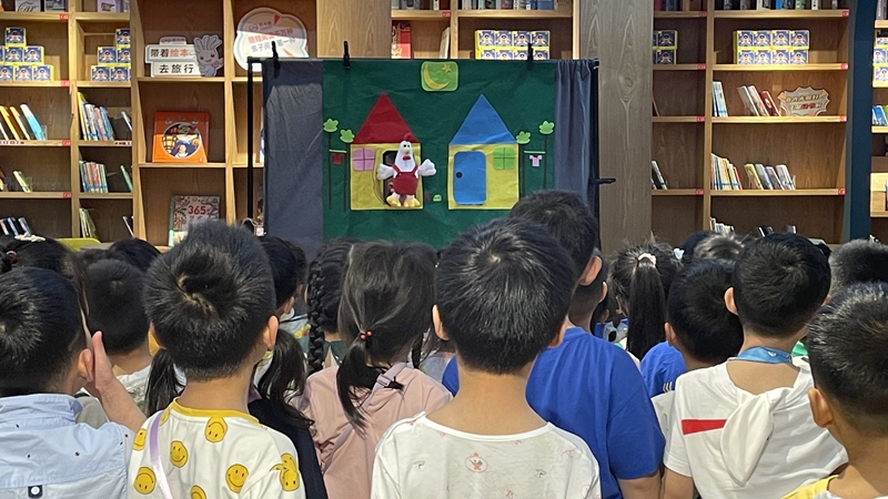 在绘本馆,孩子们认真倾听工作人员的介绍绘本馆的阅读规则、功能区域布局、阅读要求等。工作人员带来的绘本故事表演深深地吸引全体小朋友的目光,故事结束时孩子们还意犹未尽。