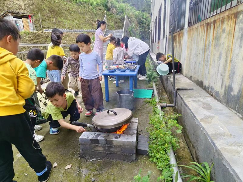 本网讯 4月20日,洞市幼儿园开展户外自主游戏的初体验活动。 伴随着快乐的旋律,孩子们在各班老师的带领下从活动室搬出游戏材料,铲子、轮胎、锅碗瓢盆、滑雪车、三轮车、脚踏车、安吉桶、木板木块、大小梯子等,自发三五成群的进入到不同的区域进行游戏,兴趣盎然地操作着游戏材料,创造出许多意想不到的玩法。 在运动区,孩子们站上滚筒,像小杂技演员一样在滚筒上自由行走……在小厨师显神通区农家味十足的“锅灶”,简单实用的“饭桌”,各位小厨师正准备着他们美味的“大餐”。她们有的洗菜、有的烧火,还有的在炒菜……她们时而添柴,时而吹火,暖暖的“烟火气”在幼儿园里荡漾,仿佛一方农家小院,孩子们忙碌而欢乐。每个楼层也开放了特色区:有同仁堂国医馆、花艺坊花店、童梦照相馆,孩子们玩的不亦乐乎!