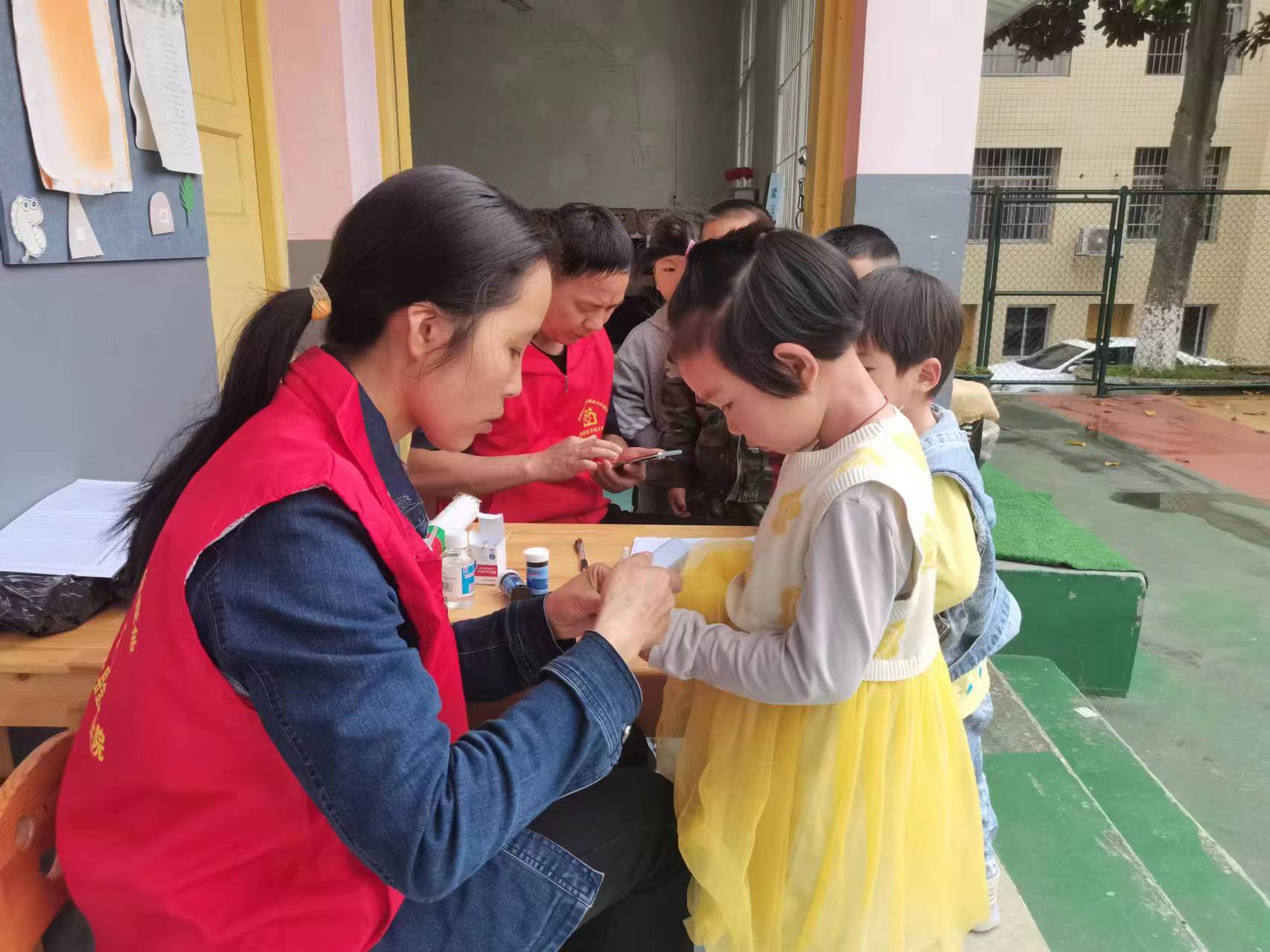 本网讯 4月19日,奎溪镇卫生院的医务人员来到奎溪坪幼儿园进行健康体检。