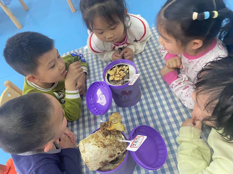 活动中,该班教师王宇婷通过图片、实物等多种形式,让幼儿认识常见的蘑菇类食物,了解误食野生蘑菇后的症状以及自救方法;通过说一说,认一认,唱一唱等形式,让幼儿了解蘑菇的基本知识;在采蘑菇的游戏中让幼儿仔细分辨有毒的蘑菇和没毒的蘑菇,掌握更多的食品安全知识。