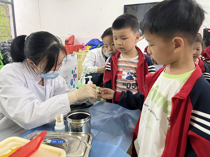 本网讯 4月18日,平口镇中心医院的医生们到平口镇中心幼儿园为孩子们进行一年一度的健康体检。 此次体检项目包括常规身体检查:身高体重、口腔检查、视力筛查、心肺功能检查等,体检内容丰富又全面。在体检过程中,各班老师用鼓励、表扬的方式给予幼儿心理疏导,积极营造一个轻松的检查氛围。特别在血常规检查中,小班的孩子比较紧张,老师们则会贴心把他们抱到自己的怀里。整个过程孩子们都很勇敢、有礼貌,主动向医生们问好,并相互鼓励着,顺利地完成了幼儿的体检工作。 体检结束后,医生根据孩子们的体检结果进行综合评价。