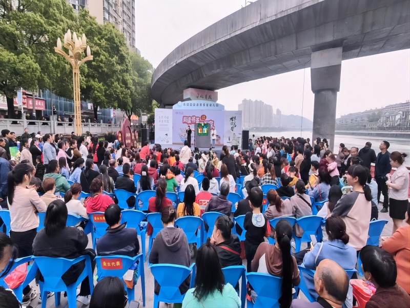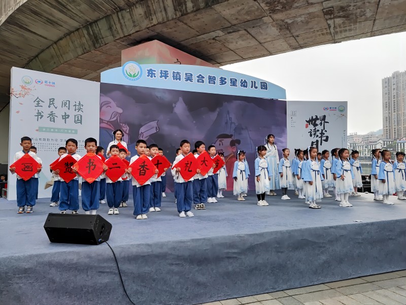 本网讯 近日,东坪镇智多星幼儿园全体师幼及家长走进资江社区——滨江广场,开展“书香礼赞二十大 阅读追梦正当时”阅读推广进社区活动,迎接即将到来的第28个世界读书日。