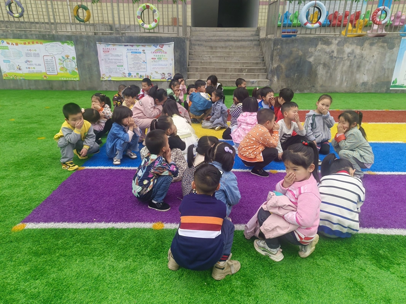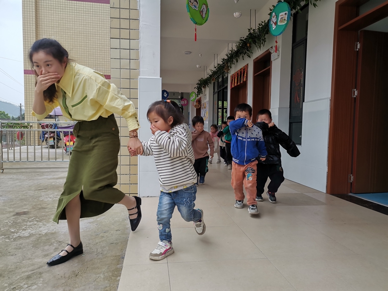 随着警报声响起,各班教师带领孩子们迅速用手或衣角捂住口鼻,弯腰小步快走,按疏散路线有序下楼,撤离到一楼操场安全区域。途中,孩子们冷静、有序、快速撤离,演练过程既紧凑又有序,没有丝毫的慌乱,达到了预期的效果。