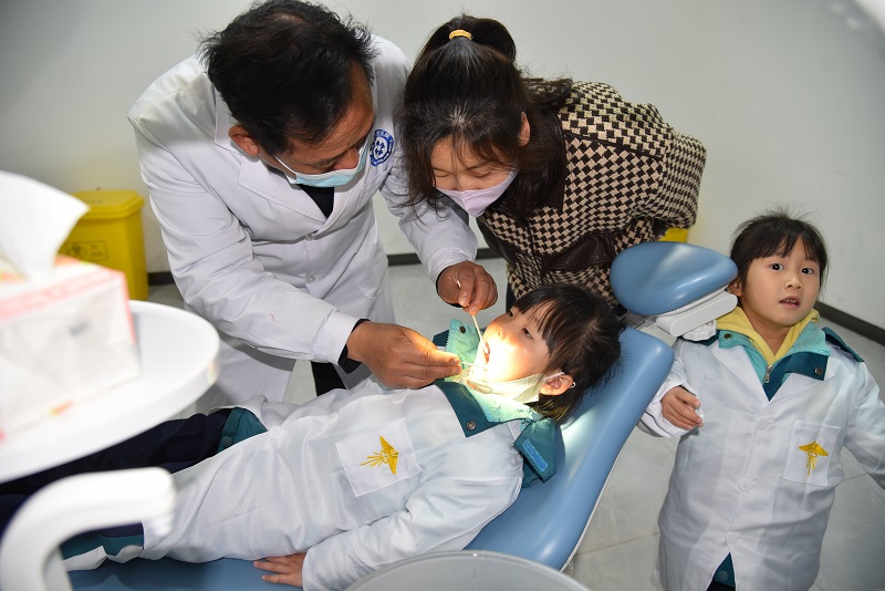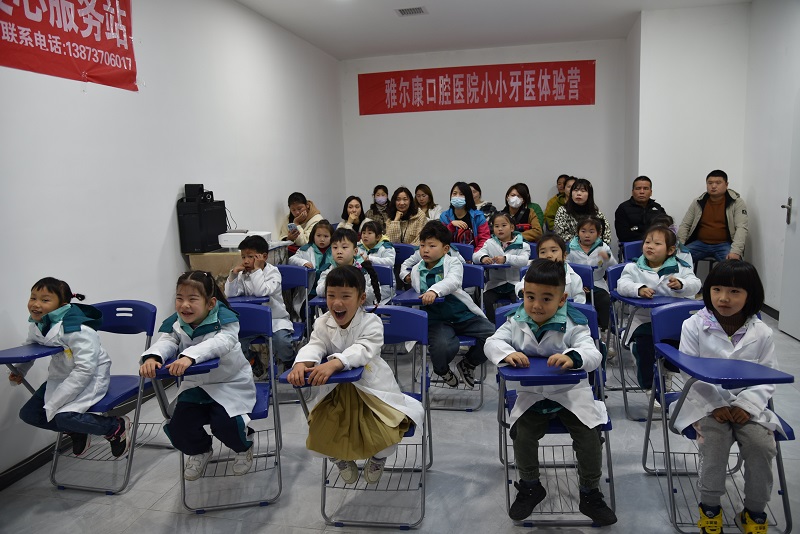 本网讯 4月7日上午,东坪镇闵家小精灵幼儿园携手雅尔康口腔医院开展“小小牙医”社会实践活动。 小朋友们换上了洁白的“小小牙医”工作服,一个个“小牙医”神采奕奕,他们对牙医工作充满了好奇。在牙医的带领下,“小牙医”们先后参观了医院的候诊区 、咨询室、休息室、种植室、拍片区等,了解各功能室的作用。 牙齿健康专题讲座中,牙医详细为“小牙医”们讲解牙齿的结构、龋齿的发展过程、怎样刷牙、如何保护牙齿等系列口腔保健知识,循序渐进地引导孩子们保护好自己的牙齿。提醒大家要少吃零食、甜食、饮料,多吃水果、蔬菜。小朋友们听得津津有味!还用模具来尝试学习、体验正确的刷牙方法。讲座中,牙医通过趣味问答的方式,让小朋友知道保护牙齿的方法。回答正确的小朋友发了奖励! 此次活动,让小朋友们在实践中轻松愉悦的氛围中学习,对口腔健康有了更深入的认知、学会了爱护牙齿的正确方法。