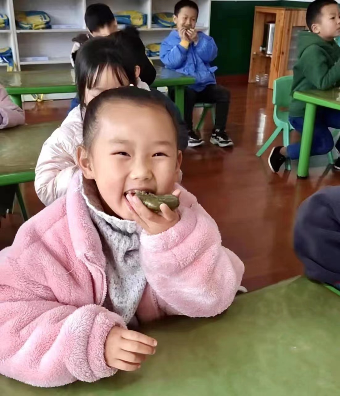 整个过程,小朋友们玩在其中、乐在其中。热气腾腾的野菜粑粑一端出来,大家兴奋地品尝着自己的劳动成果,春天的味道甜了甜了、美了美了。