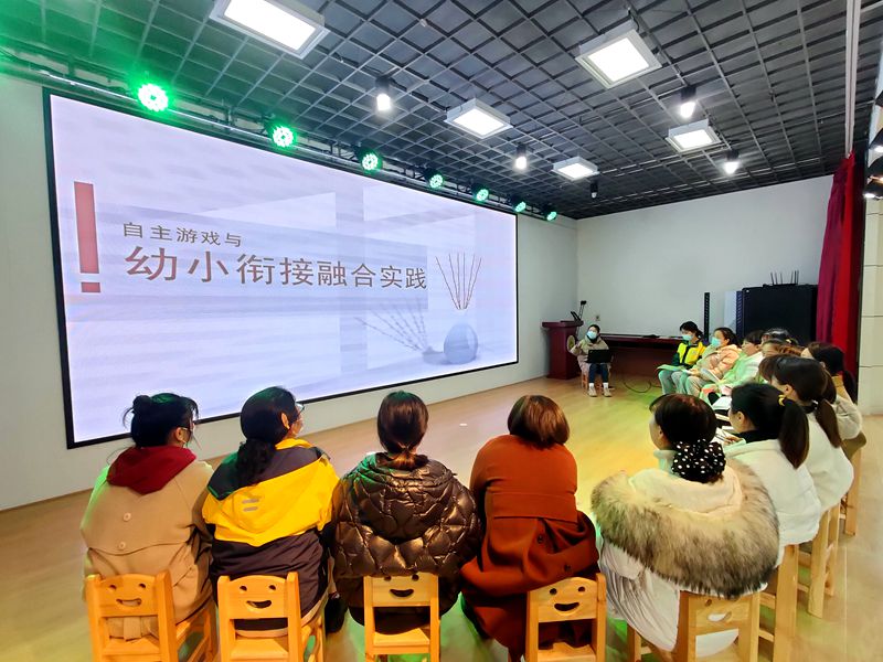 本网讯 3月29日,江南镇中心幼儿园以《自主游戏与幼小衔接融合实践》为主题召开园本研训会议,旨在打破两项试点互不相干的研究现状,追求幼小衔接常态化,与自主游戏融合推进的研究方向。 会议中,该园园长廖迎亚针对园所两项试点实践工作中存在的问题和停留的现状进行了剖析,明确提出江南园作为湖南省省级试点园所做的工作还远远不够,对今后两项试点如何融合实践给予了理论支撑和整改方向,进一步规范了教师观察指导和记录方式。在研训时,该园教师们也纷纷提出了实践中出现的问题及困惑,对话题“幼小衔接背景下的自主游戏实践”也展开了激烈的讨论。 本次研训活动,充分激发了教师们的智慧火花,做到了全员参与,思维碰撞,为两项试点的融合推进奠定较好的理论基础。