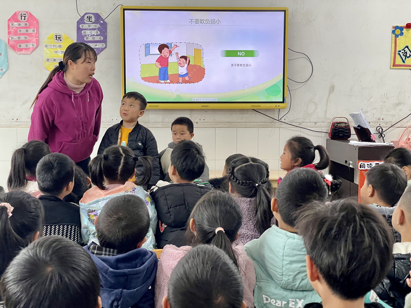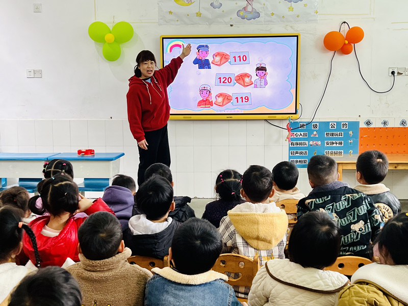 该园老师结合幼儿的年龄特点,通过PPT、故事、儿歌等多种途径展开教学,对幼儿进行交通安全、防溺水安全、防校园欺凌等安全教育。还开展了“紧急电话记心间”教育活动,通过视频、谈话等形式帮助幼儿知道110.119.120三个紧急救助电话及其用途。