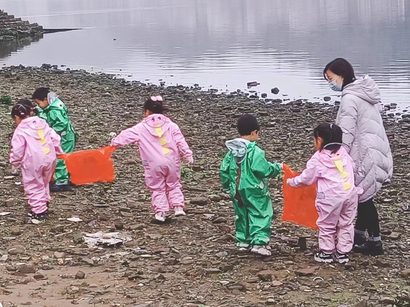 本网讯 3月21日,江南镇中心幼儿园开展“清捡江边垃圾 守护母亲河”活动,以此向“世界水日”献礼。