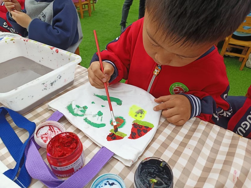 在鸟语花香的操场上,以“DIY礼物送妈妈”为主题的手袋制作活动一片热火朝天:有的在绘画、有的在剪贴,还有的在涂鸦,孩子们都努力在发挥自己的想象力,把对妈妈的爱变成了一个个温馨而又生动的画面。据悉,该园在活动开始之前,各班级还开展了爱妈妈的故事、爱妈妈的歌曲等系列班级主题活动。