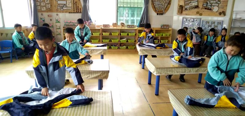 听!“两扇大门关一关,小手抱一抱,点点头,弯弯腰。”“我的衣服叠好了,哈哈。”大班的朱子冬自豪地说道。