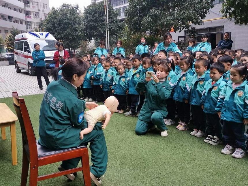 本网讯 3月6日,东坪镇泥埠桥幼儿园邀请安化县中医院天使志愿队医护人员为300余名师生进行急救技能讲座和培训。 本次培训将理论与实践相结合,分别讲解了幼儿常见呼吸道、肠道传染疾病的防护措施,并针对“心肺复苏术”和 “海姆立克急救法”进行了手把手教学,有效地帮助大家认识相关疾病及急救知识,具备了简单的救护能力,进一步提高了应对和处理突发事件的能力。医护人员利用真人模型进行现场演示,在演示的同时,清晰地描述着各项细节要领,如心肺复苏的黄金时间,胸外心脏按压部位、频率、深度,按压与吹气比例等。这系列指导演练,不仅让教职工掌握了心肺复苏术的几个核心步骤,还趣味记忆了海姆立克急救法的“剪刀、石头、布”的简便要诀。 “只有自己动手了,才能理解并掌握‘心肺复苏’的正确操作,过程中会有失败,但更多是反复练习取得成功后的喜悦。”在了解心肺复苏术及气道异物梗阻的急救方法后,老师们迫不及待地开始分组进行模拟演练。从第一次的技巧不熟练,到反反复复的练习,老师们通过实际演练掌握了海姆立克急救法和心肺复苏的操作要领,巩固了所学知识和技能。
