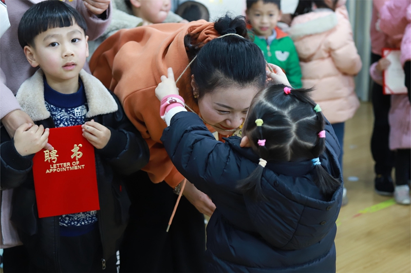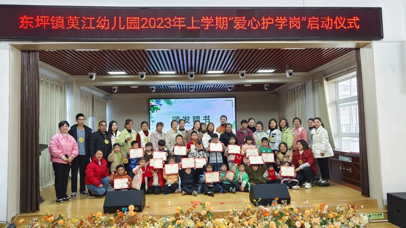 本网讯 3月3日下午,东坪镇萸江幼儿园组织家长志愿者召开2023年上学期爱心护学岗启动仪式。 开学初期向全园发起参与家长护校队的倡议,家长们踊跃申请加入护卫队。业务副园长温洁担任本次启动仪式的主持人,对家长护学岗的职责、值岗时间、站位站点进行了详细部署。安全主任与护卫队成员共同就护卫队工作细则进行了交流讨论。如:如何护送哭闹幼儿顺利入园?遇到突发情况应该如何处理等问题。家长们在讨论环节中各抒己见,只为护学岗工作能够更加的具有实效性,服务到每个孩子。 园长颜群芳为每位成员颁发了荣誉聘书,可爱的孩子们亲自为家长佩戴了自制护校徽章。希望家长护校队能维持幼儿来园、离园时的正常秩序,确保幼儿上下学安全,充分发挥家庭和幼儿园的桥梁和纽带作用。