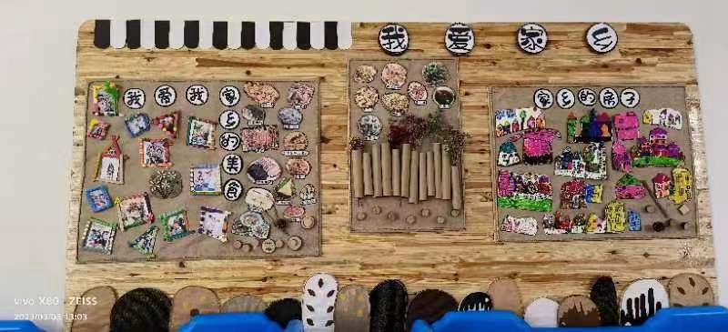 本网讯 近日,江南镇中心幼儿园创设特色环境,让孩子们感受家乡文化的魅力。 开学初,各班根据园务会议要求,分农耕文化、家乡美食、劳动礼仪等板块,携手家长、幼儿精心准备,巧手创设环境。在教师、家长和孩子们的巧手慧心下,废旧轮胎、树皮、稻草、农家废弃日常用品、幼儿画作等等,拼凑出了一幅幅匠心独具、充满童趣的图画,其中“祖先的家园”“我爱家乡”“种子乐园”等作品更是让人赞叹不已。 该园相关负责人表示:环境创设的完成还只算刚刚开始,后期关键的是要让环境说话,让孩子们在实践中理解家乡民俗文化的内涵,激发他们热爱、传承、创新家乡文化的热情。
