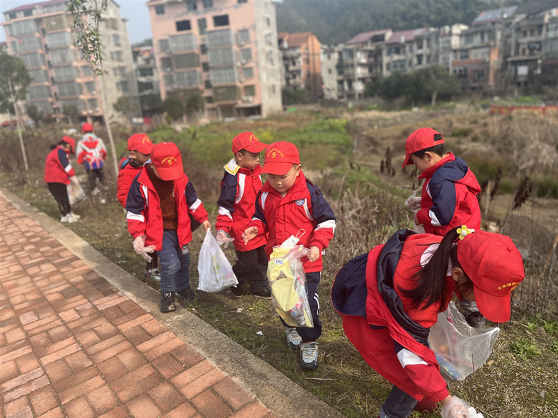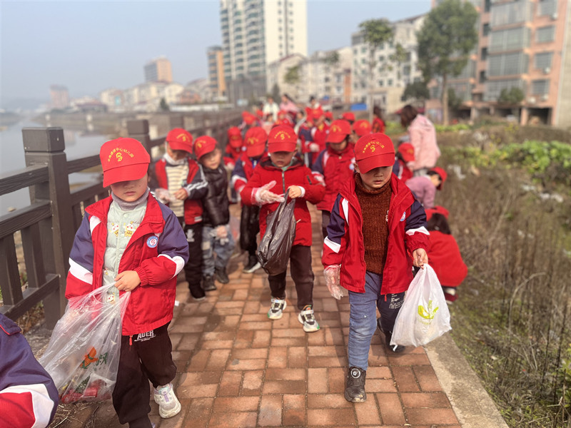 本网讯 3月2日,羊角塘镇中心幼儿园开展“保护母亲河,争当小雷锋”社会实践活动。 “出发!”带队老师的一声令下,小小志愿者们带着准备好的手套、塑料袋等工具沿河而上,开始捡拾河堤两旁的白色垃圾物和生活杂物“这里有烟头,快来捡。”低头,弯腰,捡拾,一次又一次的重复动作,小小志愿者们一点一点地把散落在路上、绿化带里的垃圾捡起,不一会儿就捡满了一袋。这一群活跃在路上的“小雷锋”成了善水河畔一道亮丽的风景线。同时,小志愿者们还积极向沿河居民广泛宣传,呼吁大家共同参与到保护生态环境的活动中来,杜绝向河内倒垃圾、扔杂物等不文明行为,形成人人为绿色环保做贡献的积极氛围。 据悉,活动前,该园做了详细的活动方案及安全预案,发挥家长护学岗力量,保证人员配备齐全,确保幼儿路途安全。各班级教师在出发前,就本次社会实践活动进行了安全教育课,引导幼儿树立牢固的安全意识。