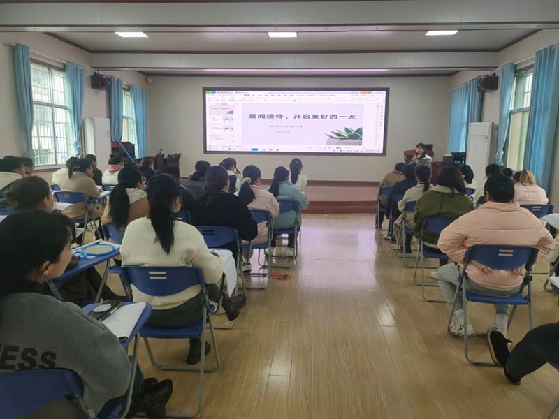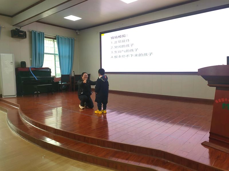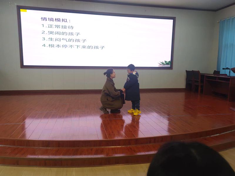 本网讯 2月28日中午,梅城镇中心幼儿园园本研训活动《晨间接待,开启美好的一天》专题讲座在四楼多媒体室举行,全园18个班级主配教师参加,由副园长付蓉主讲。 付蓉围绕晨间接待的重要性、晨间接待现状、 晨间接待流程这三大块展开讲述。针对入园时正常情况下的孩子、哭闹的孩子、生闷气的孩子、根本停不下来的孩子这几种情况来进行接待模拟。小班组谭霞老师、中班组张凤老师、大班组谢莹蓉老师根据各自的经验大胆表现,在她们张开双臂大大的拥抱中、在蹲下身来甜甜的微笑中、在一声声亲切的“早上好”中完成了师幼最温馨的见面。在进行标准的微笑练习时,老师们拿出事先准备好的镜子,照着、笑着、你看看我、我看看你,爱与美好在整个会场传递。 合理的晨间接待,能让孩子身心愉悦,实现家园间的无缝连接,让孩子健康,家长放心,相信晨间接待将成为梅城镇中心幼儿园一道靓丽的教育风景线。